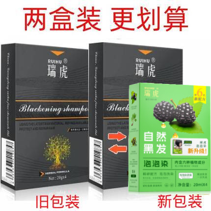 2盒 瑞虎染发剂非植物一洗黑不伤发自然纯黑色无刺激染发膏旅行装