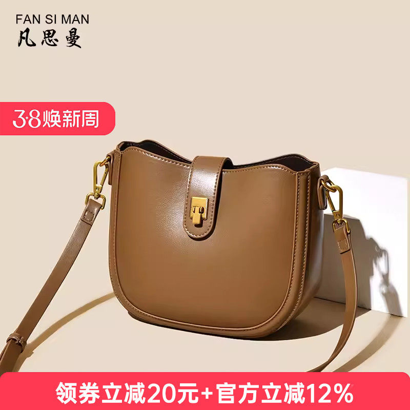 - 真皮斜挎水桶包