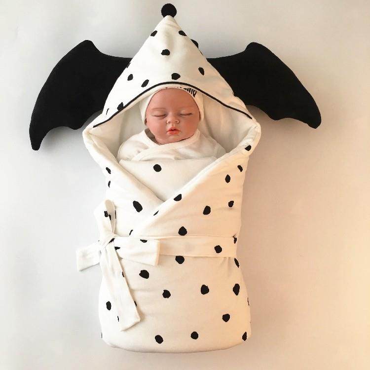 初生婴儿包巾黑色波点新生儿纯棉包被秋冬款可拆卸襁褓巾抱被加厚