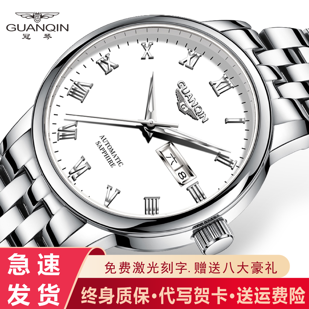 官方冠琴手表男全自动机械表夜光防水时尚商务精钢带男士腕表正品