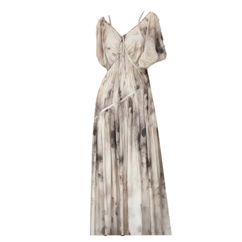 - 印花雪纺连衣裙