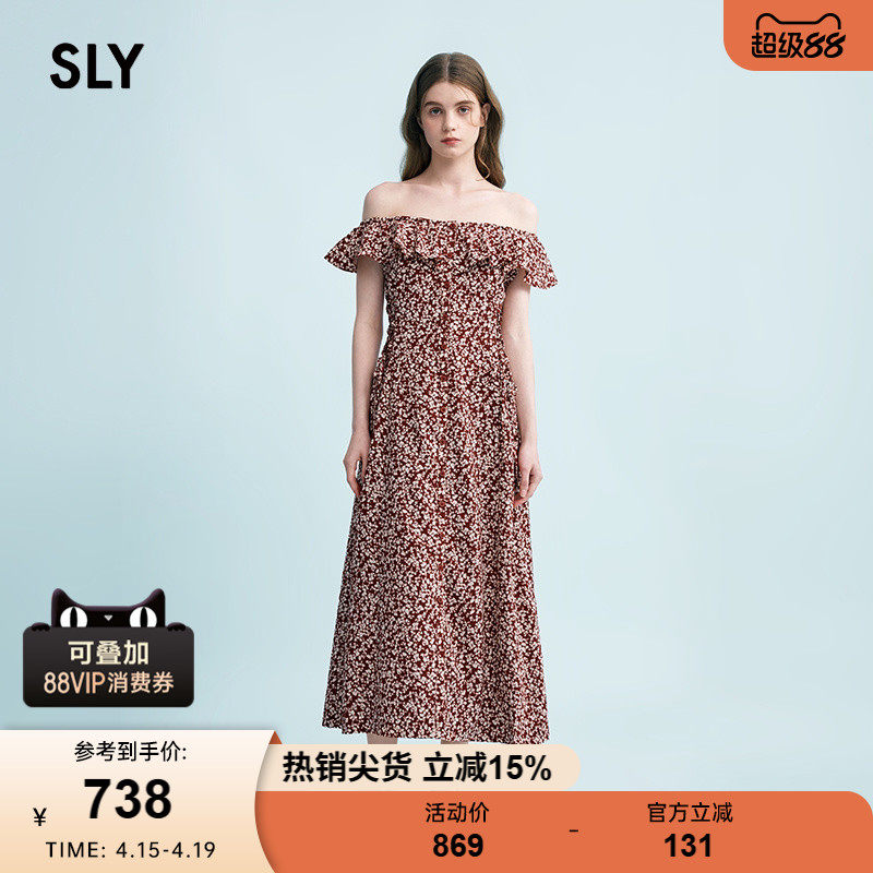 SLY 夏季新品海边度假风优雅碎花一字肩连衣裙038HAM33-0071