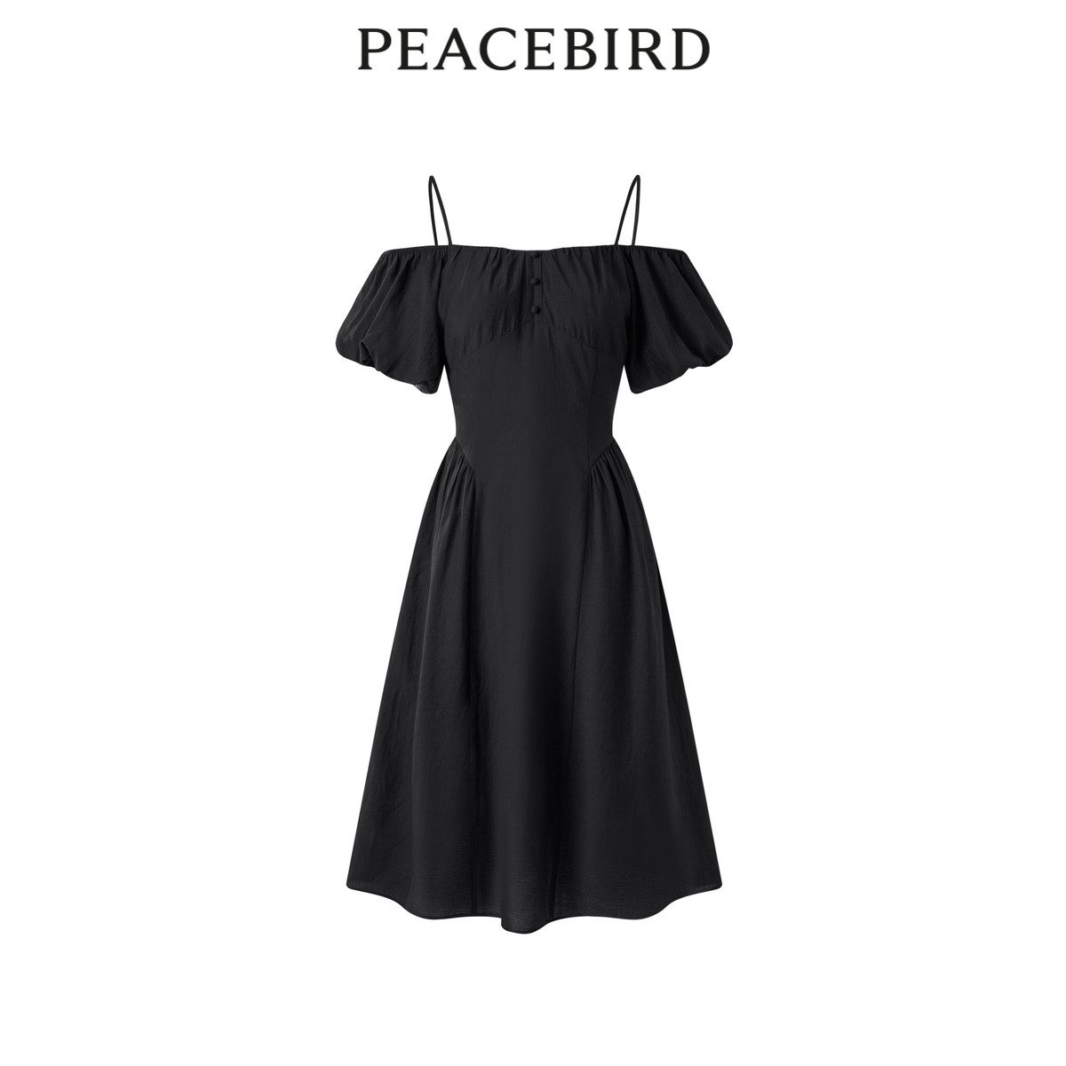【Basic衣橱】朗姿25法式一字肩抽褶长裙夏装新款礼服优雅连衣裙