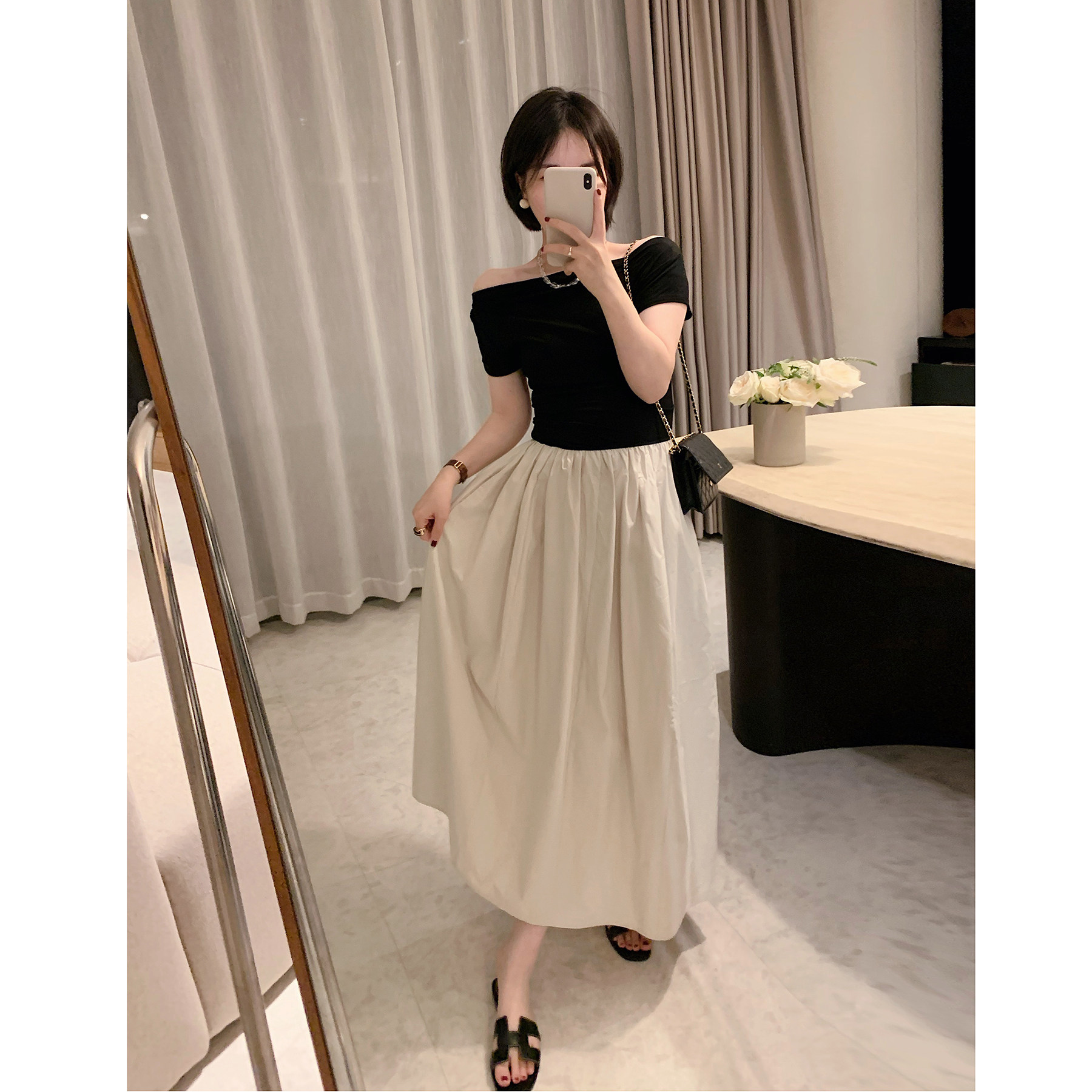一字肩连衣裙夏[第1名]