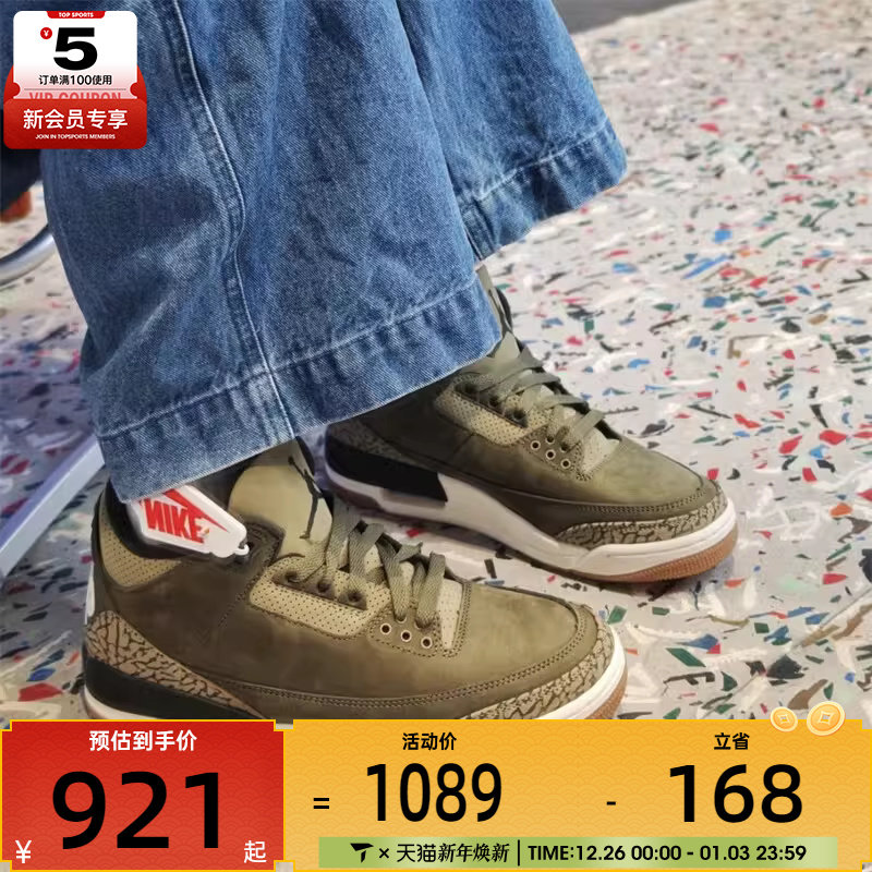 Jordan Air Jordan 3 WMNS AJ3橄榄绿爆裂纹复古篮球鞋DN3707-202