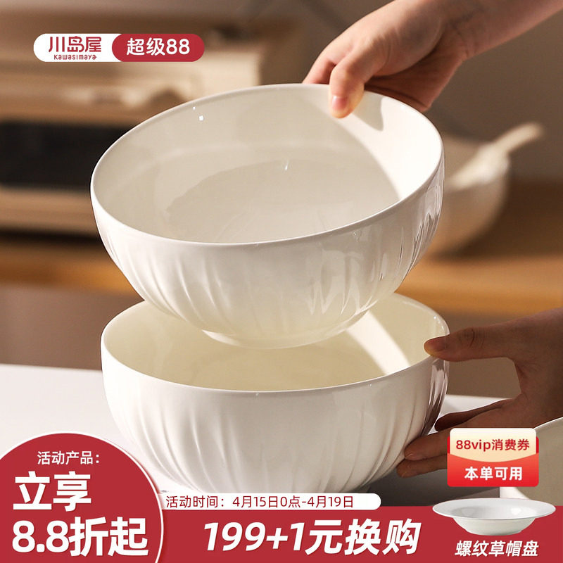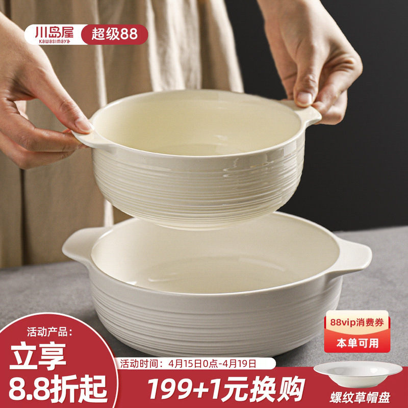 川岛屋双耳汤碗家用2026新款大号陶瓷汤盆螺蛳粉碗8寸拉面泡面碗