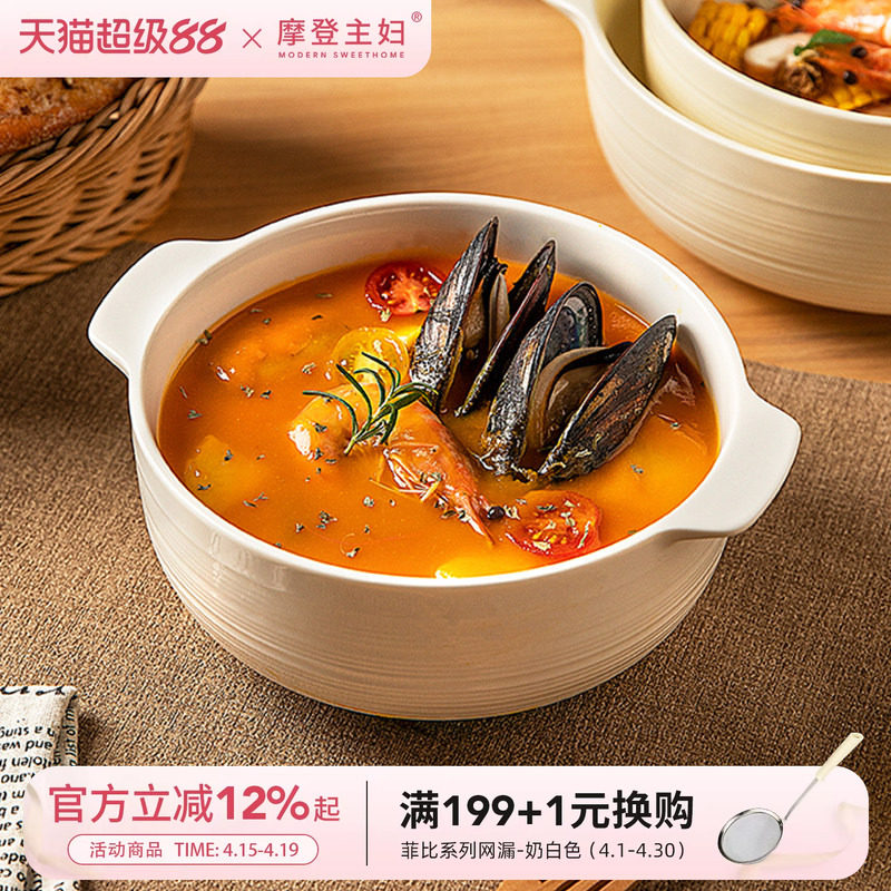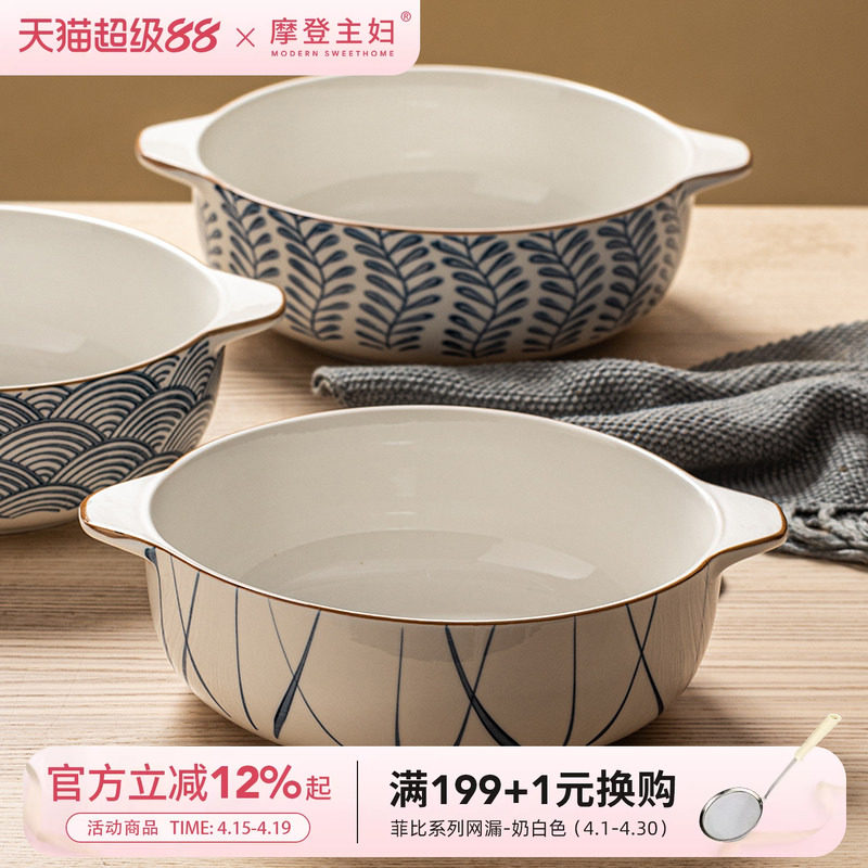 摩登主妇双耳汤碗家用2026新款大号面碗日式陶瓷汤盆酸菜鱼大盆碗