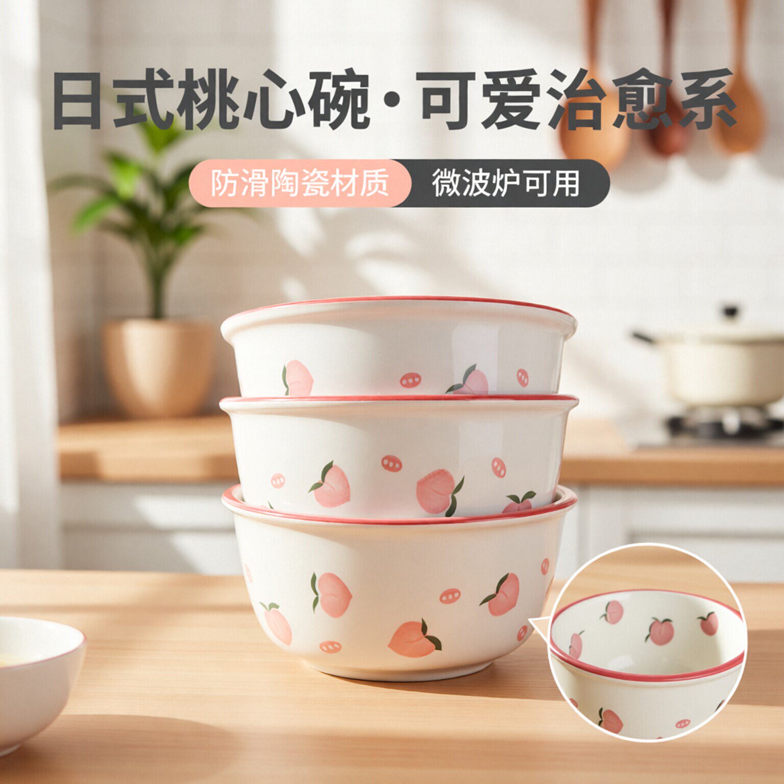 釉下彩创意卡通饭碗家用陶瓷食品碗儿童沙拉水果碗米饭汤碗可微波