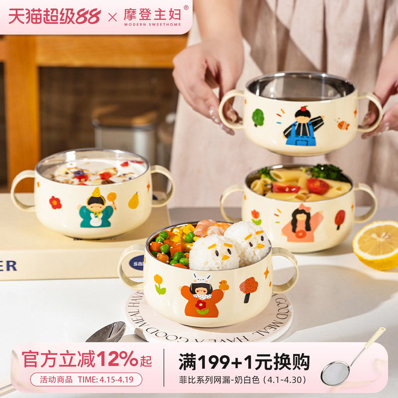 摩登主妇儿童碗小学生汤碗带盖316L不锈钢餐具宝宝吃饭专用辅食碗