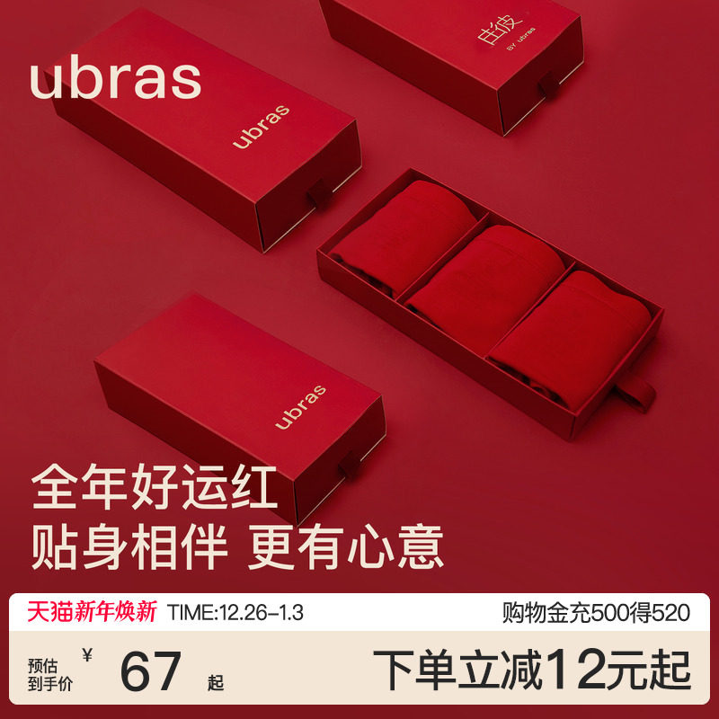 ubras本命年红色内裤女马年纯棉裆短裤红袜子结婚情侣新年礼盒装
