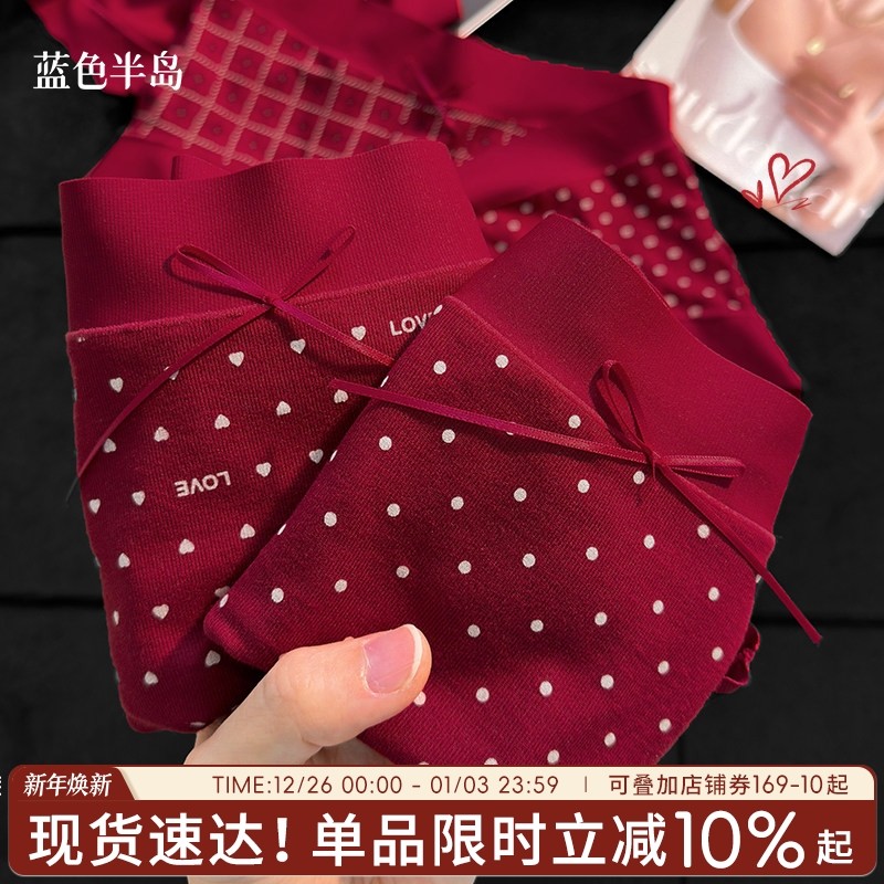 本命年红内裤女纯棉抗菌裆结婚情侣一对男士新年马年中高腰三角裤