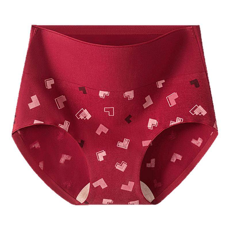 80支莫代尔高腰收腹抑菌本命年大红内裤女无痕冰丝三角裤透气提臀