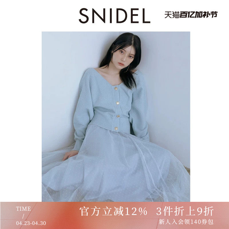 SNIDEL2025秋冬新品V领针织开衫高腰薄纱A字半身裙套装SWNO255014