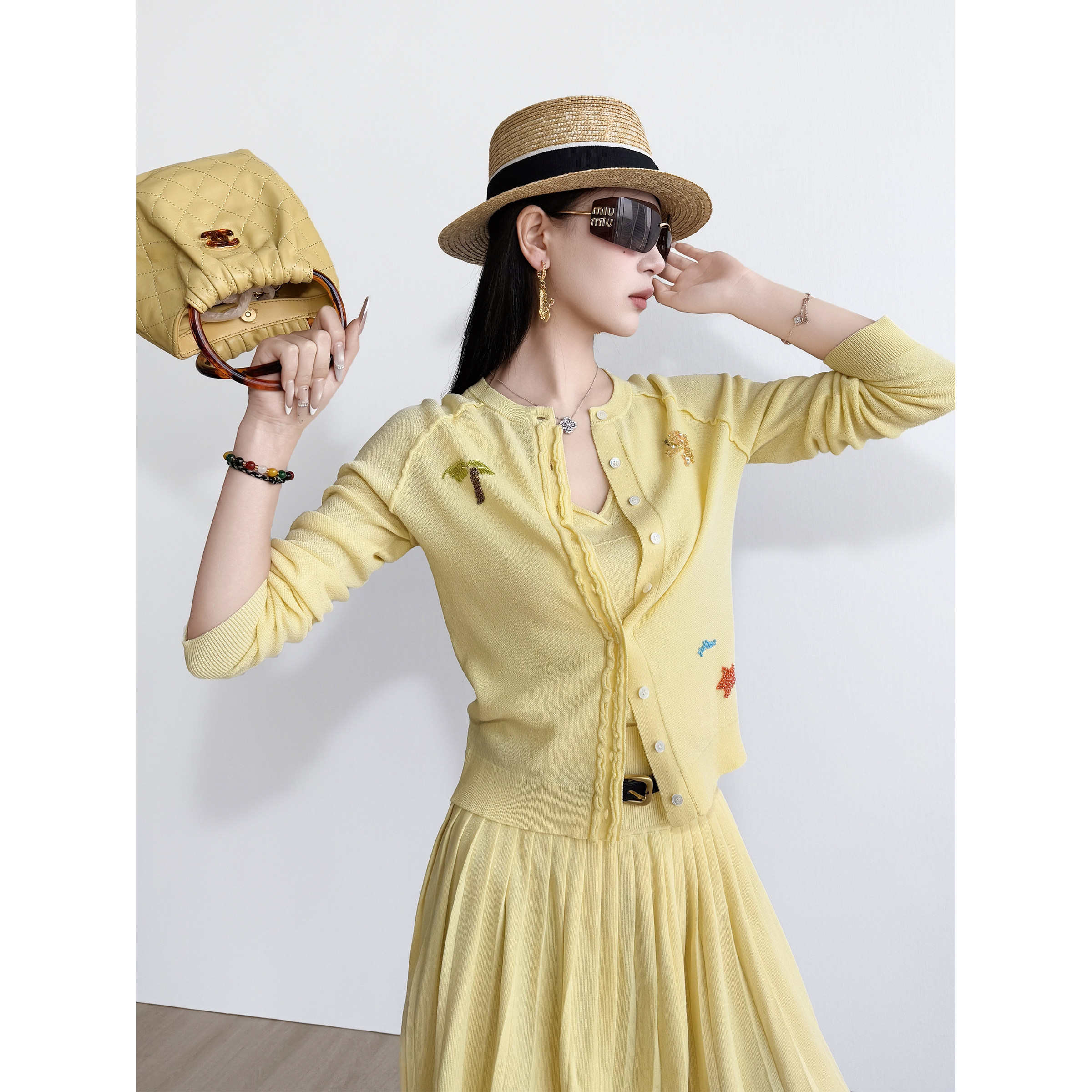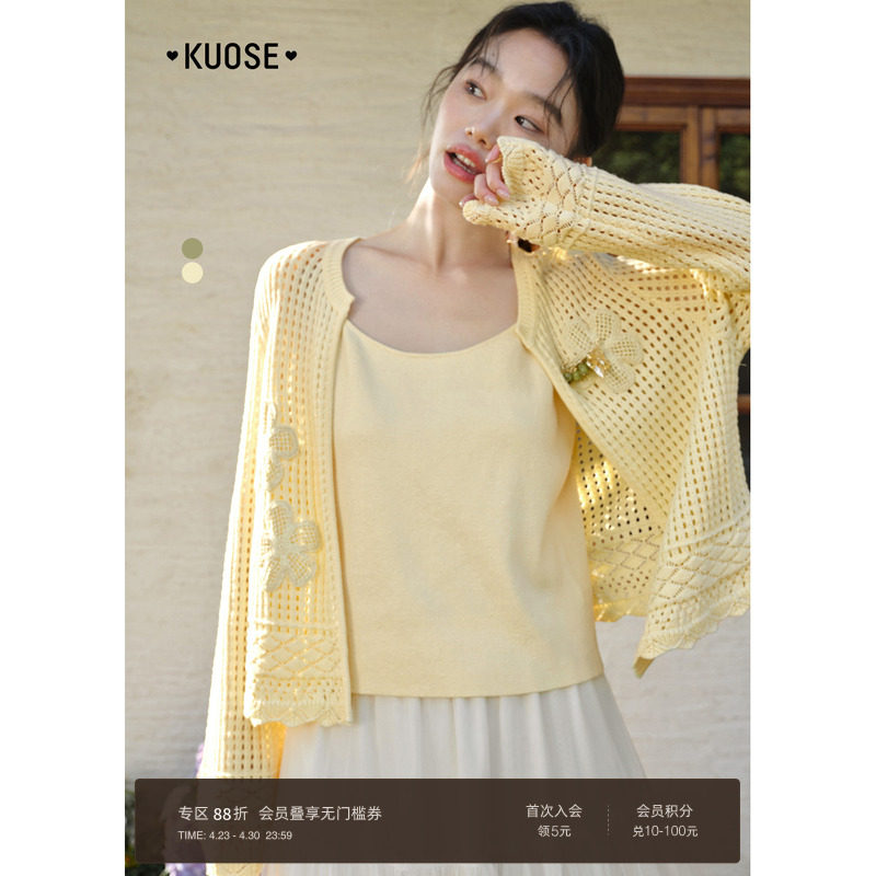 阔色黄色开衫外套吊带两件套装女26新款早春漂亮穿搭针织上衣夏季