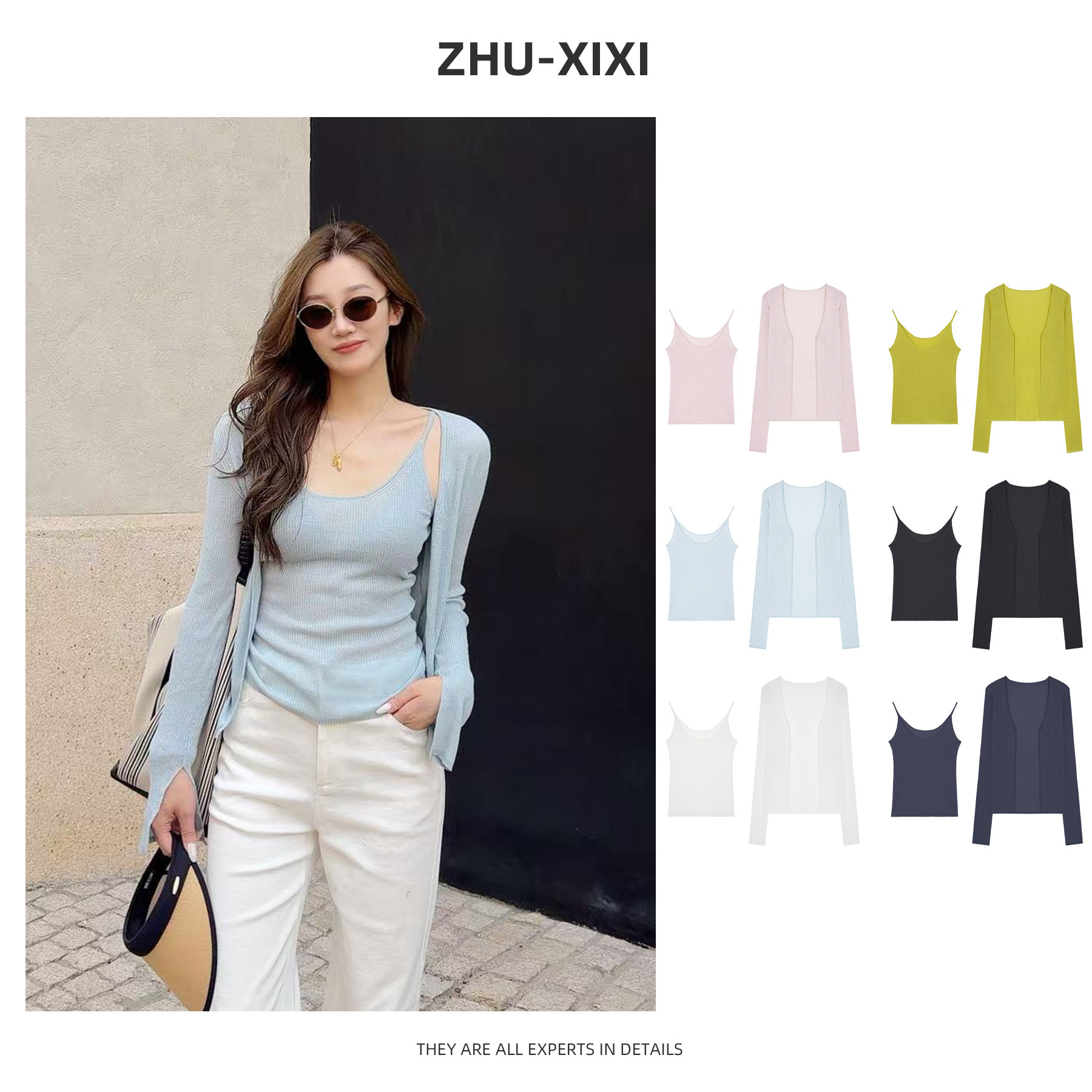 祝喜喜【凉感叠穿】春夏时尚百搭少女感修身显瘦针织开衫吊带套装