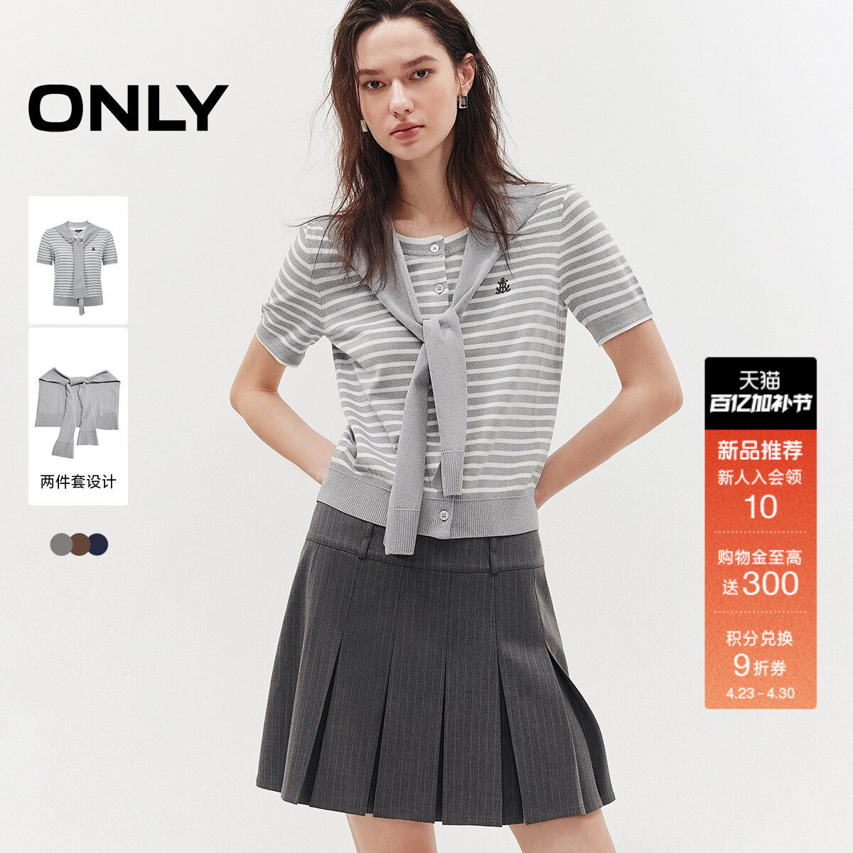 ONLY2026夏季新款老钱风可拆卸披肩套装短袖开衫针织衫上衣女