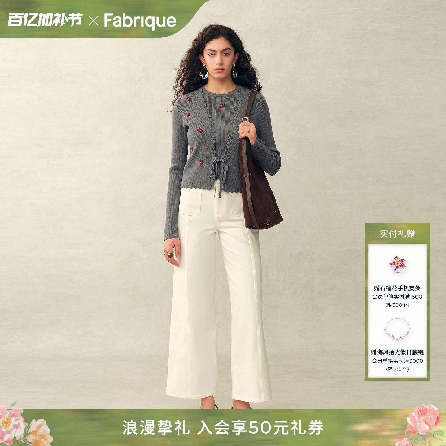 Fabrique小樱桃刺绣绵羊毛绑带针织开衫背心套装女2026年春夏新品