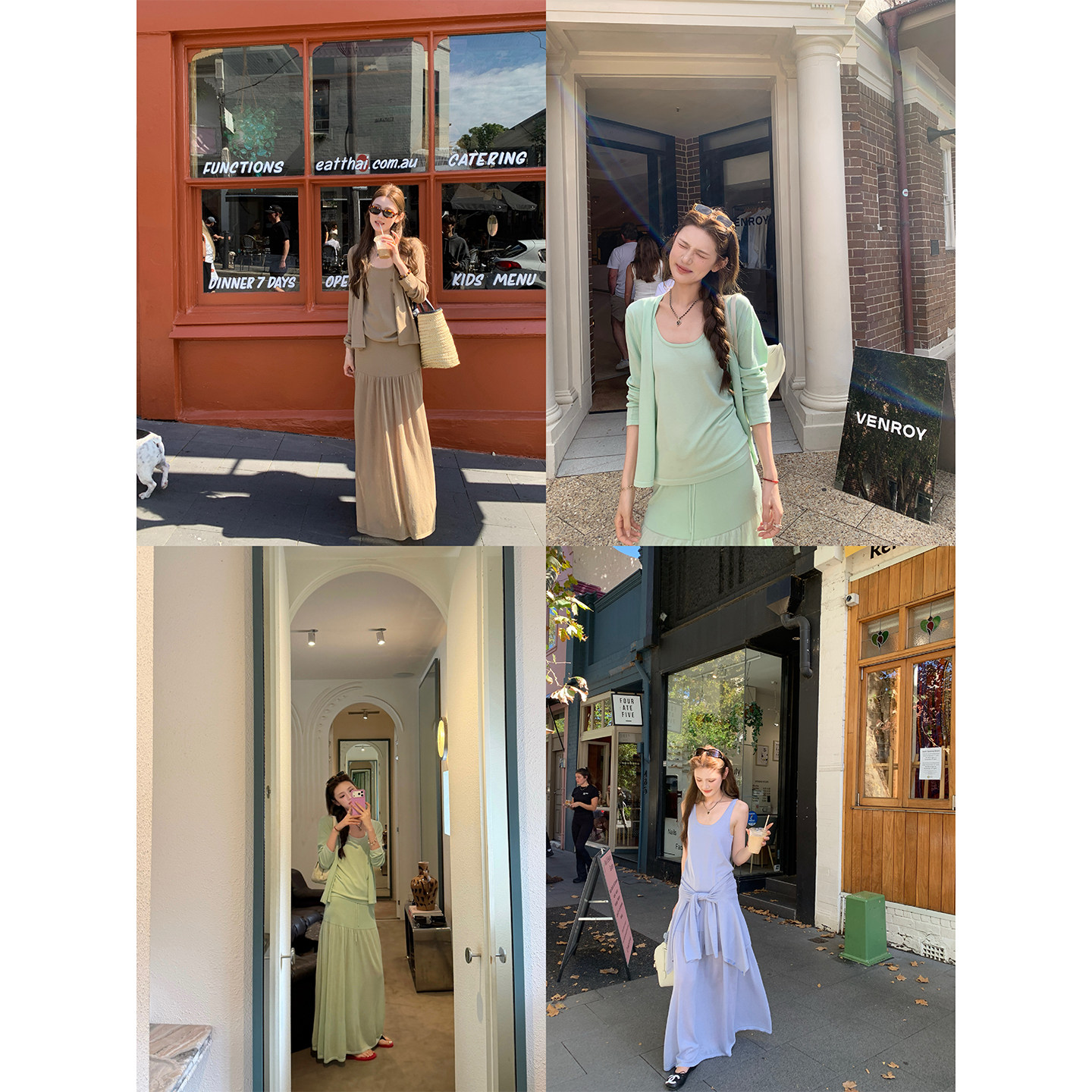 aaaaxbbb 明洞洋桔梗 U领背心吊带防晒开衫外套系带长裙针织套装