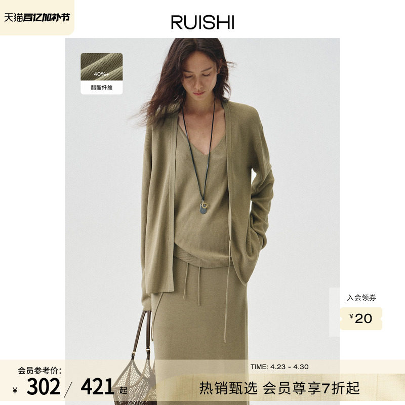 RUISHI芮时'城野漫巡'慵懒松弛醋酸混纺针织衫背心半身裙套装女夏