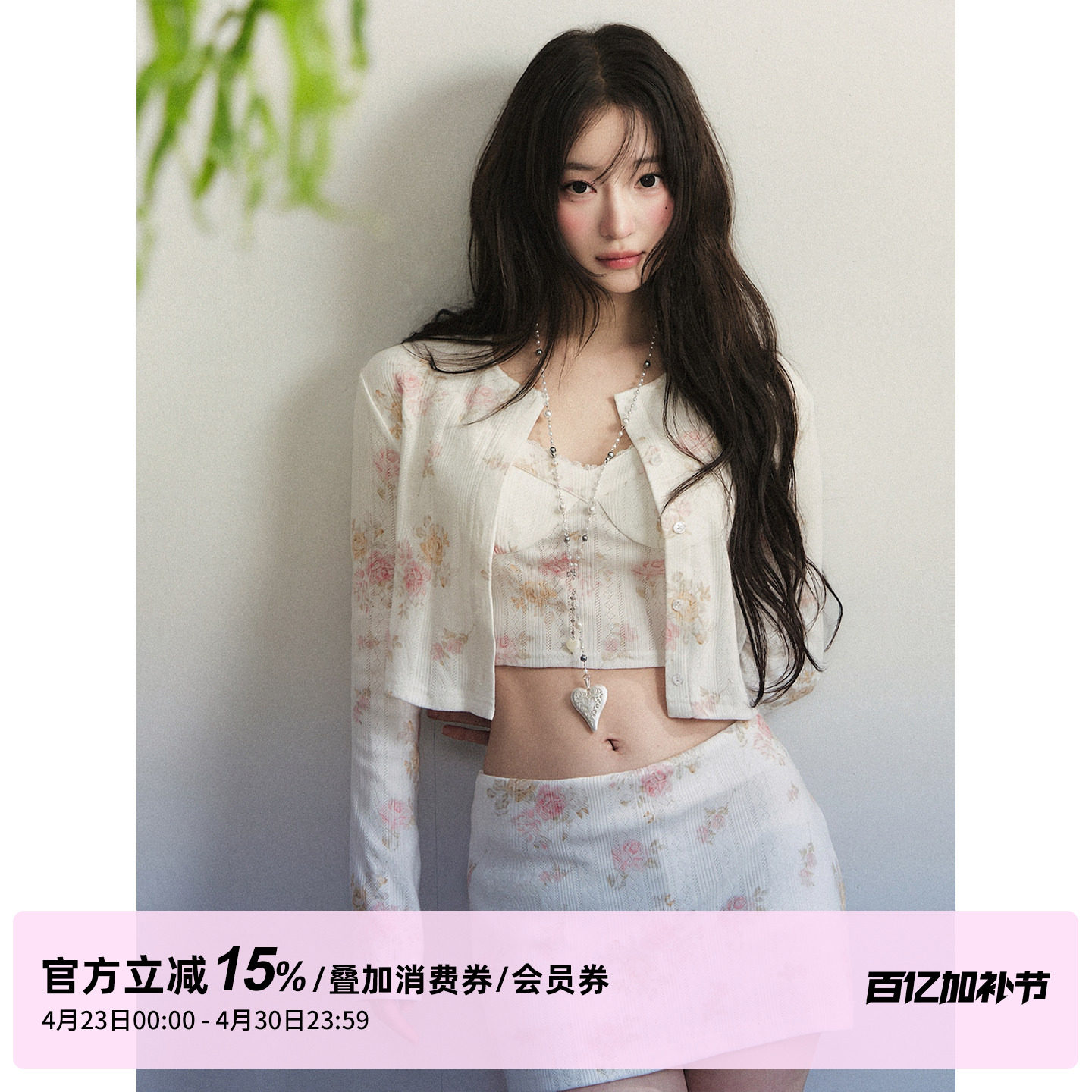 1P STUDIO 复古玫瑰碎花短款针织开衫背心吊带低腰包臀裙三件套装