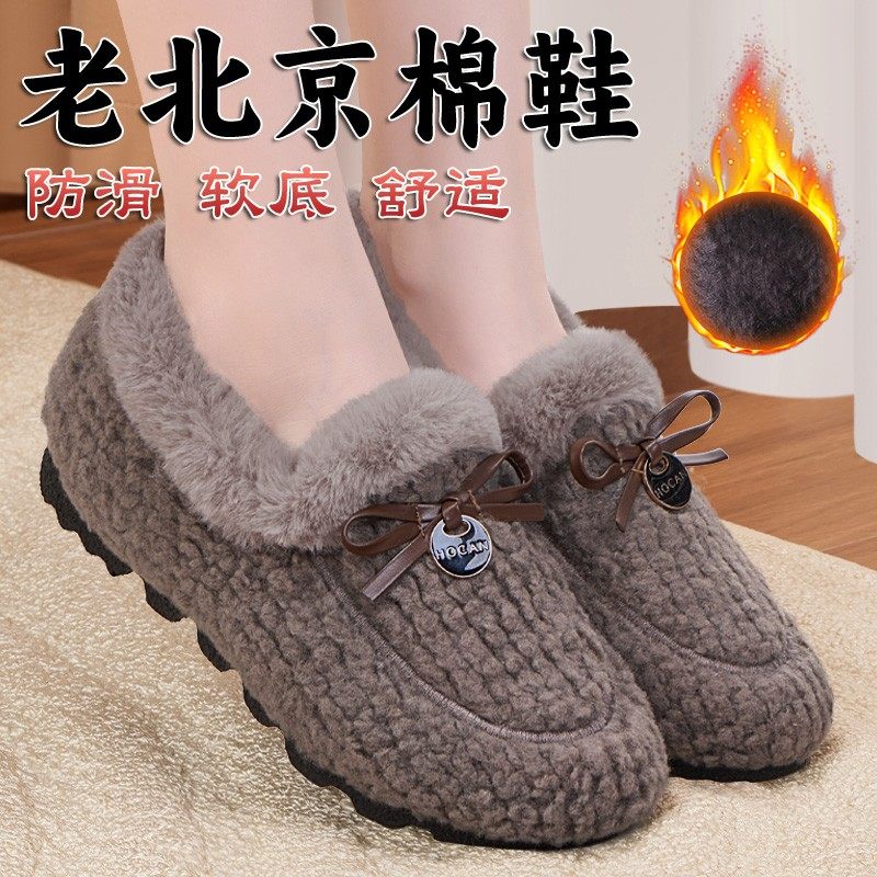 豆豆鞋女冬季加绒毛毛棉鞋牛筋底妈妈鞋软底舒适一脚蹬老北京布鞋