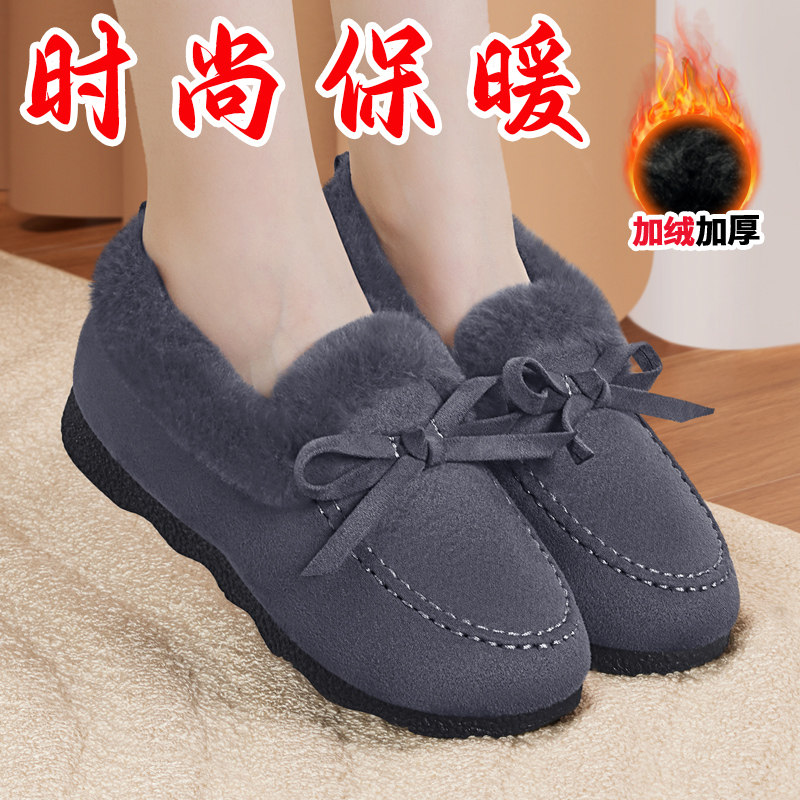 豆豆鞋女冬加绒加厚保暖舒适老北京布鞋一脚蹬棉鞋平底休闲毛毛鞋