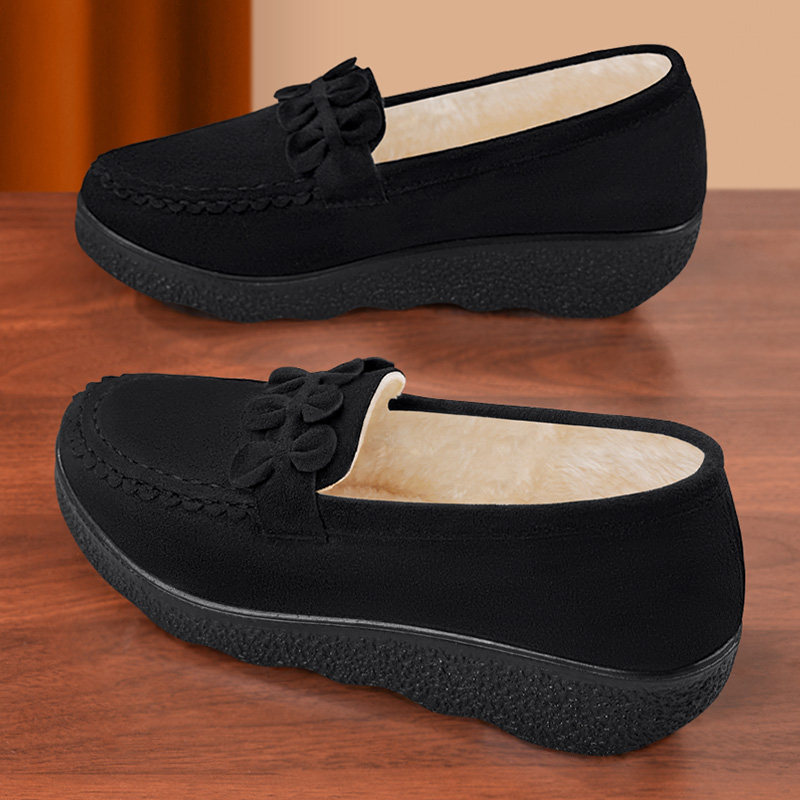 加绒豆豆鞋女冬季老北京布鞋毛毛鞋加厚保暖乐福鞋软底舒适妈妈鞋
