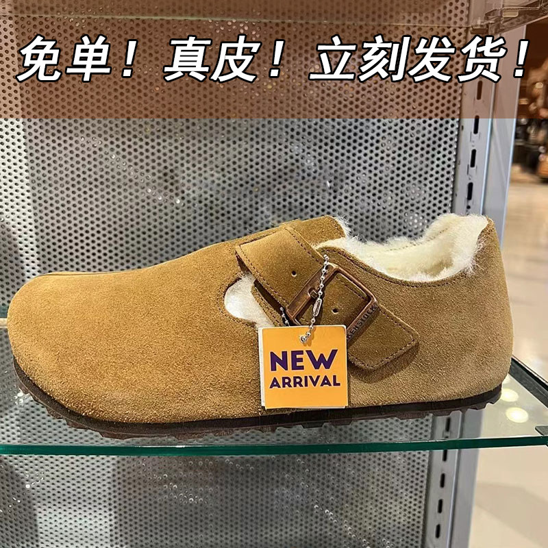真皮全包厚底勃肯鞋加绒博肯鞋豆豆鞋女冬内增高一脚蹬棉鞋毛毛鞋