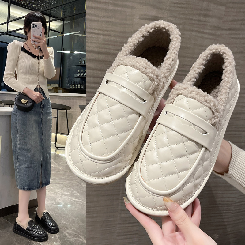 豆豆鞋女2025新款爆款秋冬季一脚蹬外穿加厚毛毛鞋孕妇毛绒豆豆鞋