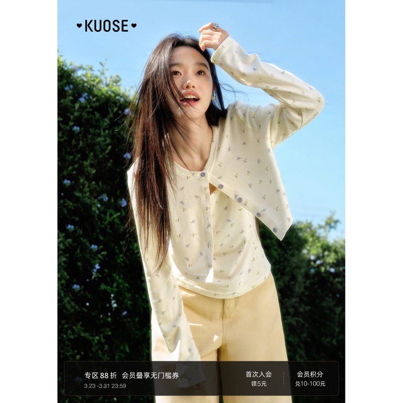 阔色碎花长袖短款开衫吊带背心两件套装26春秋季新款女针织衫上衣