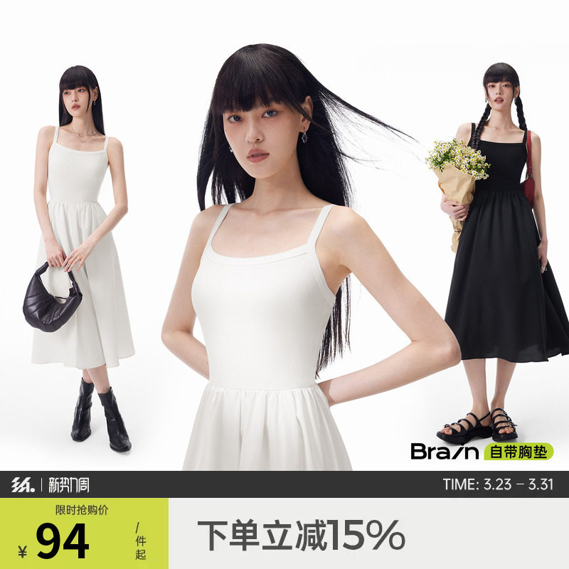 【捡漏价】半练带胸垫吊带裙薄纱连衣裙白色裙子秋季长裙连身裙女
