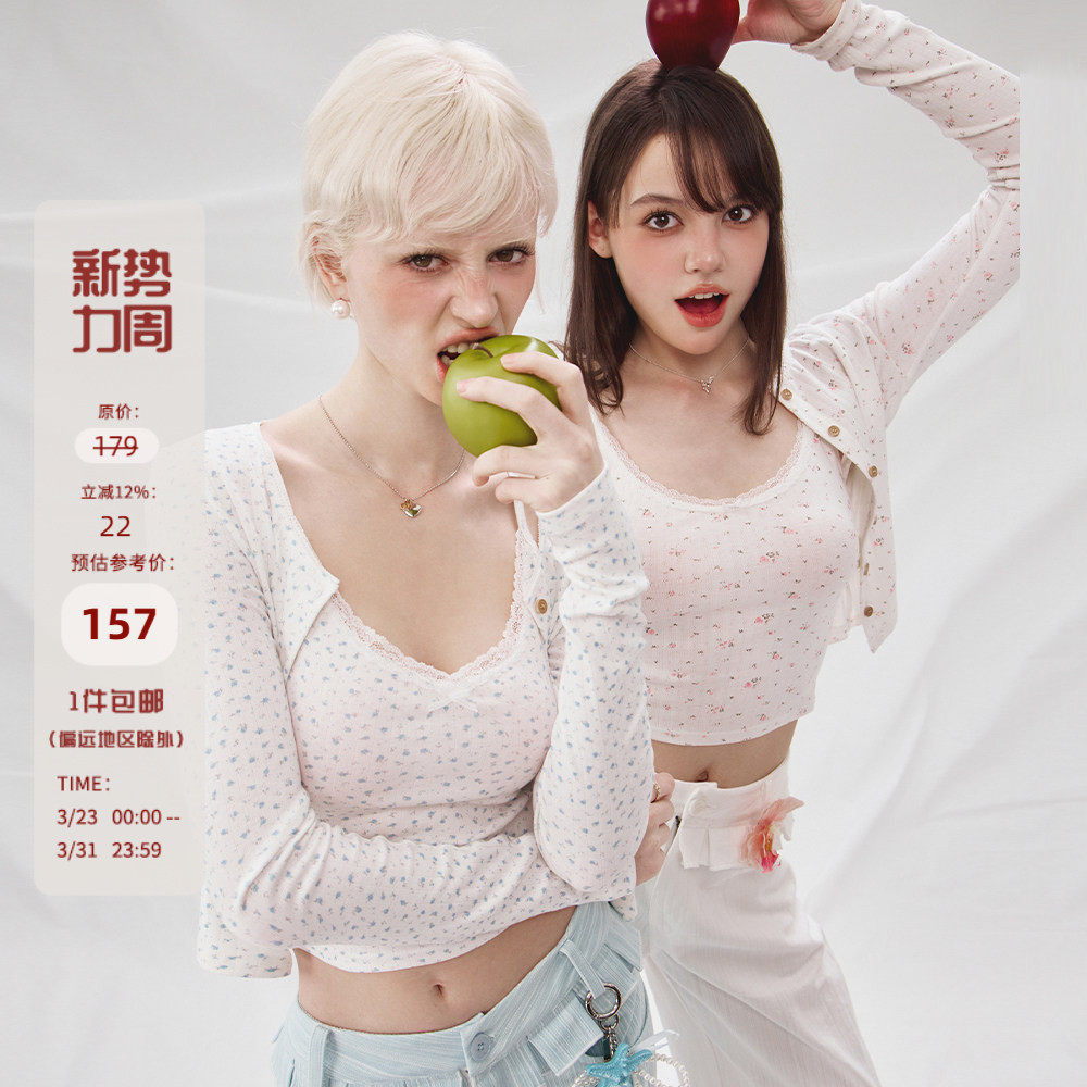 Mess Studio春秋小众甜美碎花吊带背心长袖开衫T恤长短半裙女套装