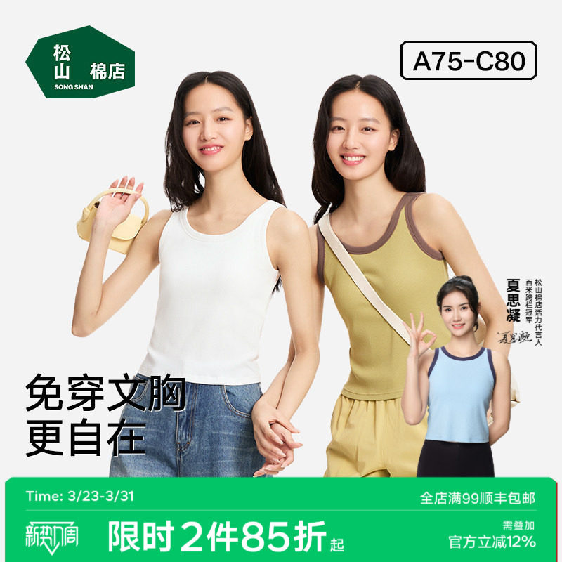 松山棉店二合一女士背心免穿文胸体白色吊带带胸垫内搭打底内衣秋