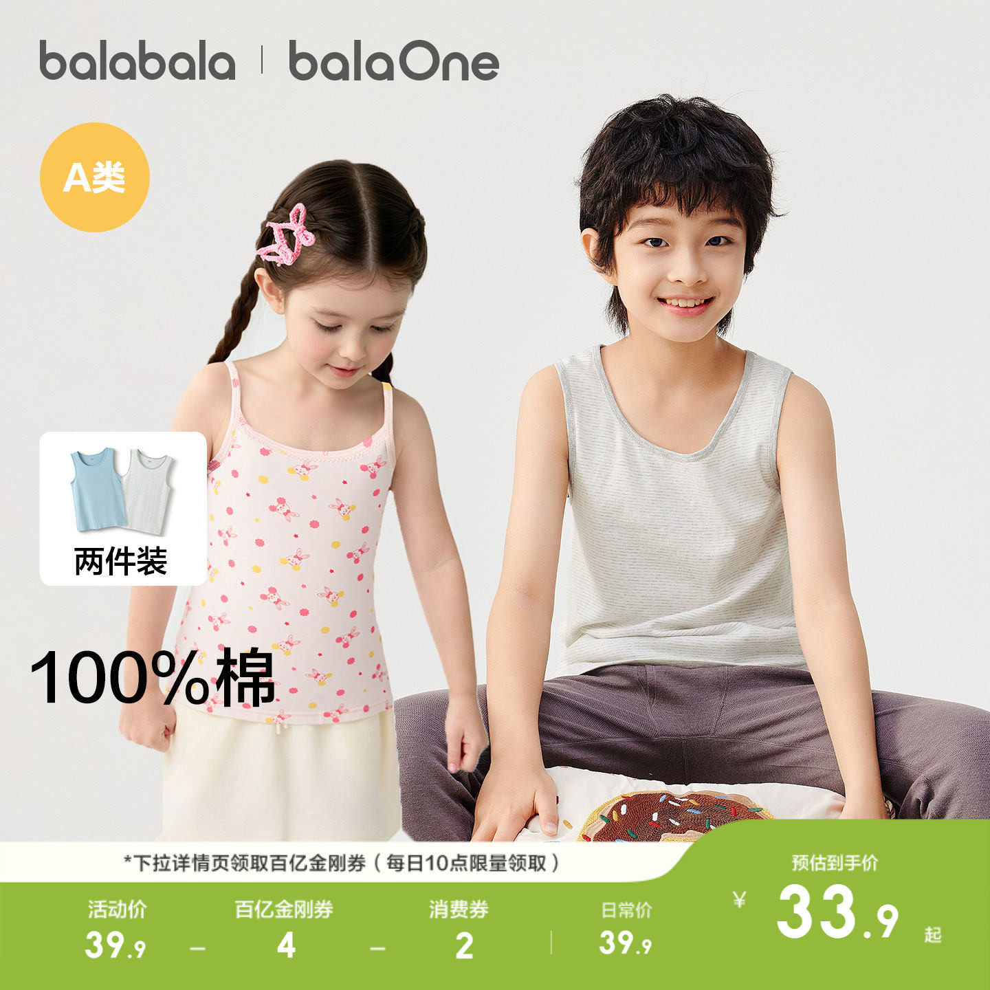 巴拉巴拉儿童打底背心女童吊带男童保暖裤秋裤纯棉a类无袖两件装