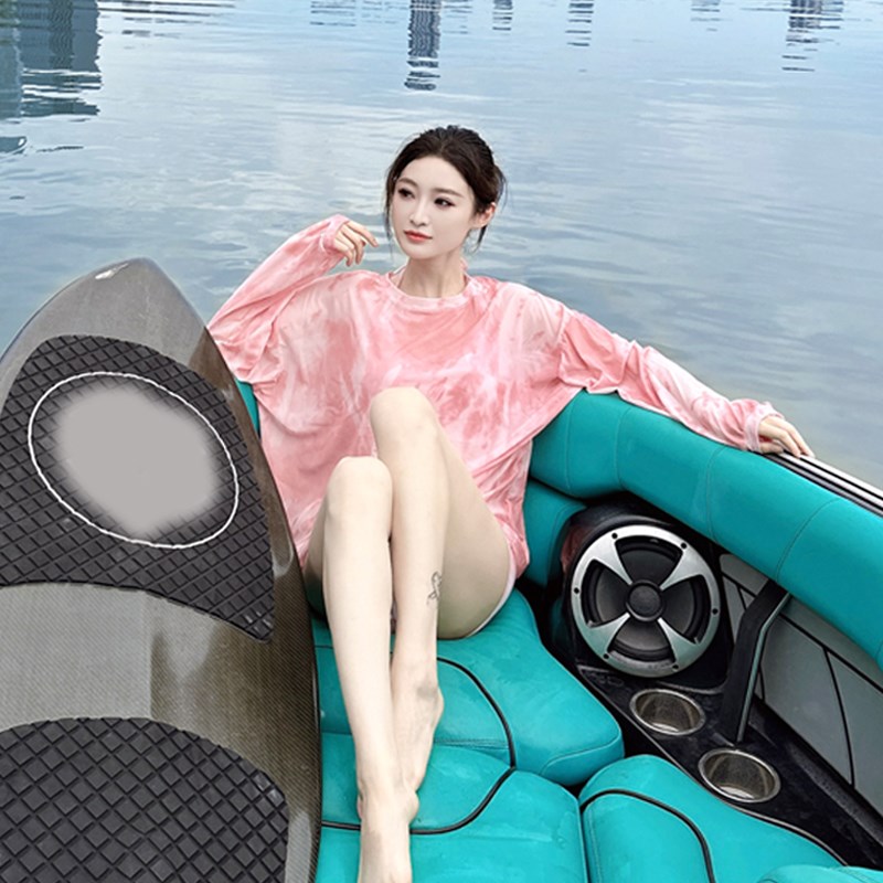 2024新款泳衣女三件套罩衫遮肉显瘦分体韩版遮肚长袖粉色显白温泉
