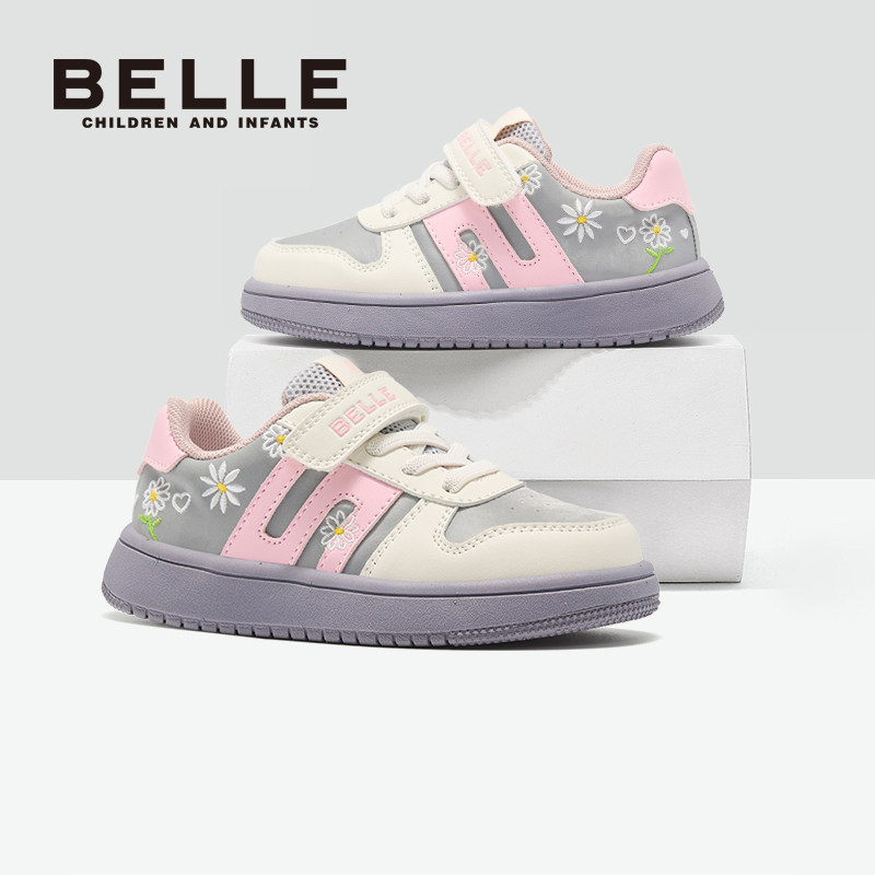 百丽童鞋儿童运动鞋粉色公主女孩低帮板鞋跑步学生暴走户外女童鞋