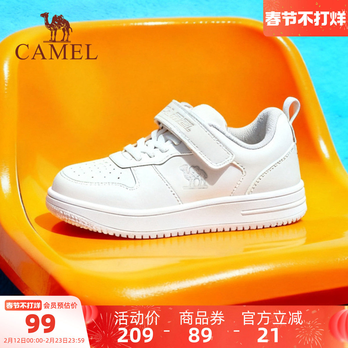 骆驼童鞋儿童小白鞋防滑耐磨魔术贴男女童白色运动鞋大童休闲板鞋
