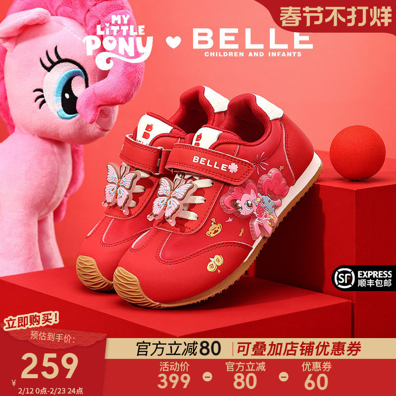 百丽童鞋小马宝莉联名运动鞋马年限定女童板鞋儿童卡通新年红色鞋