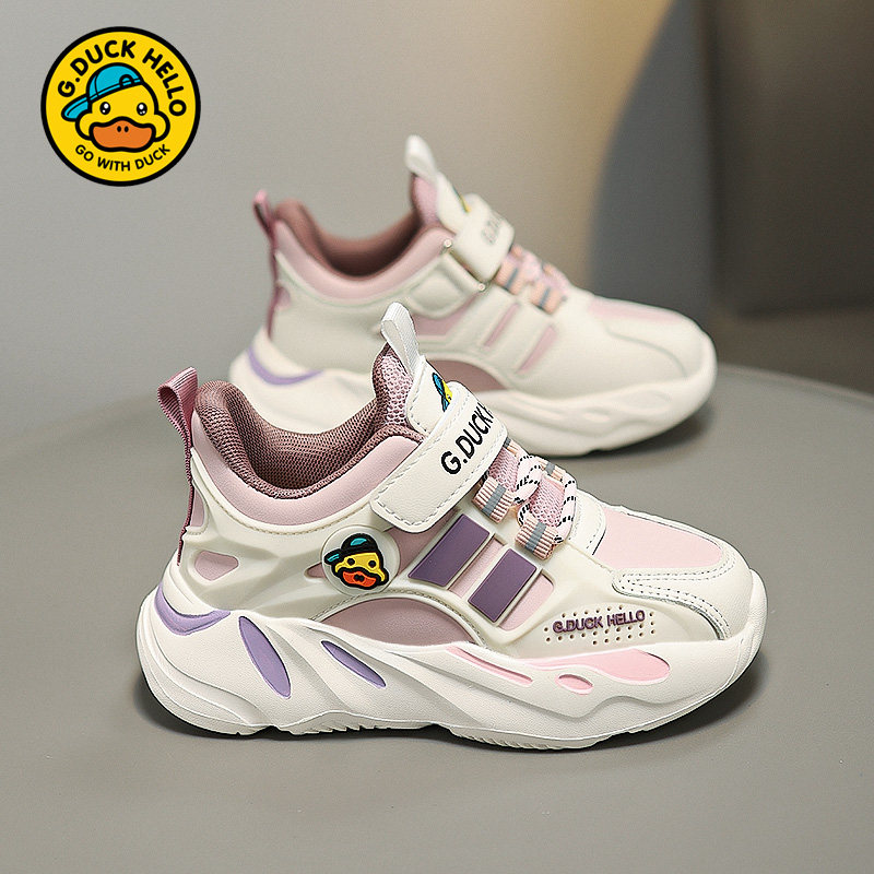 小黄鸭童鞋女童鞋子秋冬款2026新款小女孩皮面防水冬鞋儿童运动鞋