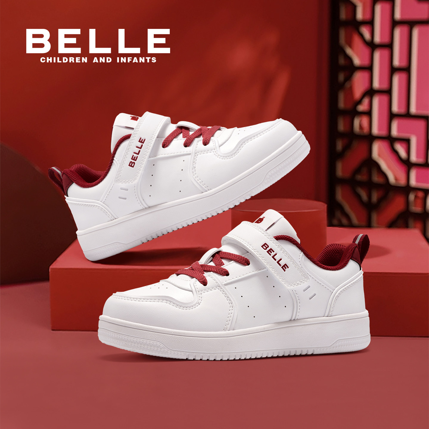 百丽童鞋儿童运动鞋红色新年低帮板鞋男女童百搭过年鞋软底休闲鞋