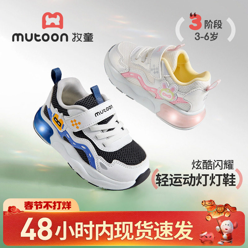 牧童儿童闪灯鞋2026春季新款机器人男童鞋轻便减震女童学生运动鞋