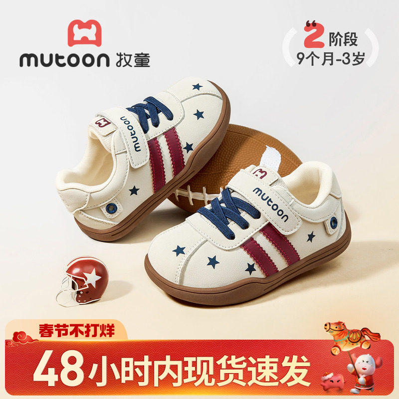 牧童宝宝板鞋男童2025秋冬新款童鞋软底皮面星星德训鞋女童运动鞋
