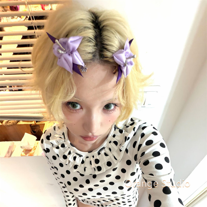 GUKUALI甜美头饰复古樱桃蝴蝶结发夹森系鸭嘴夹对夹侧边夹刘海夹
