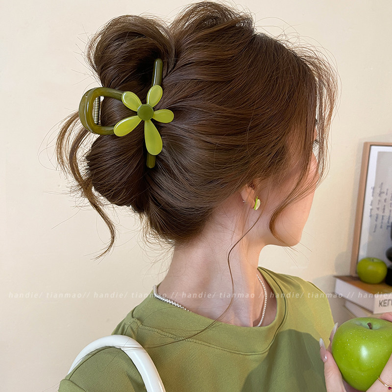 清新森系花朵高马尾头发抓夹女高级感2025新款后脑勺盘发夹鲨鱼夹