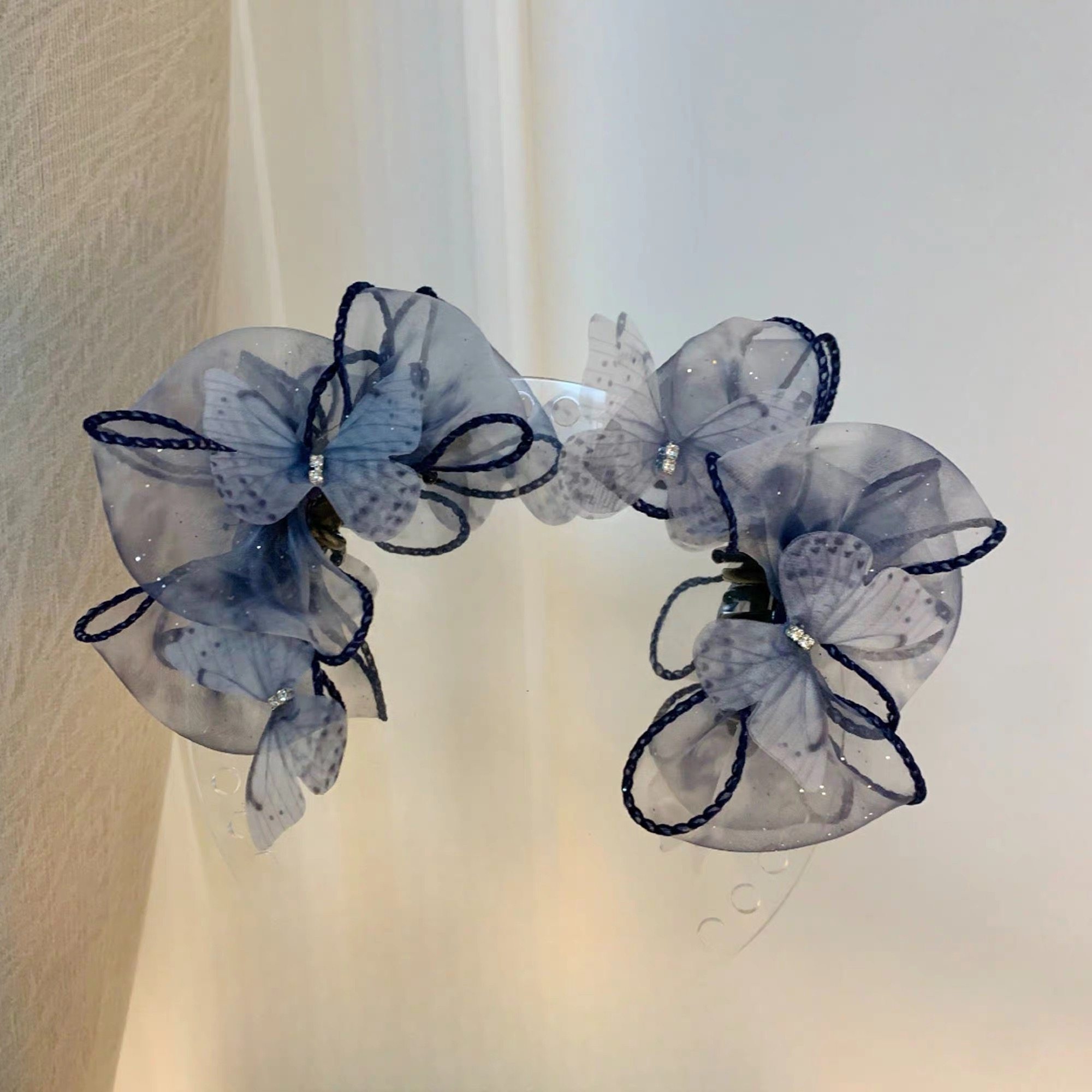 【青花瓷】森系蝴蝶结碎发夹7cm轻奢高级感灵动蝴蝶网纱超轻抓夹
