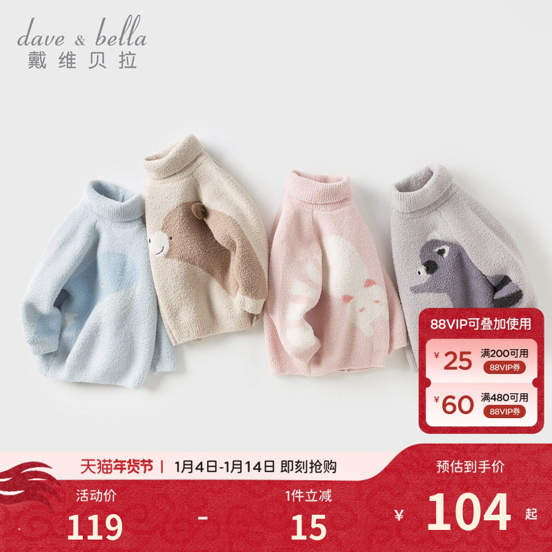 戴维贝拉儿童雪尼尔毛衣男女童冬装针织高领套头打底衫女宝宝童装