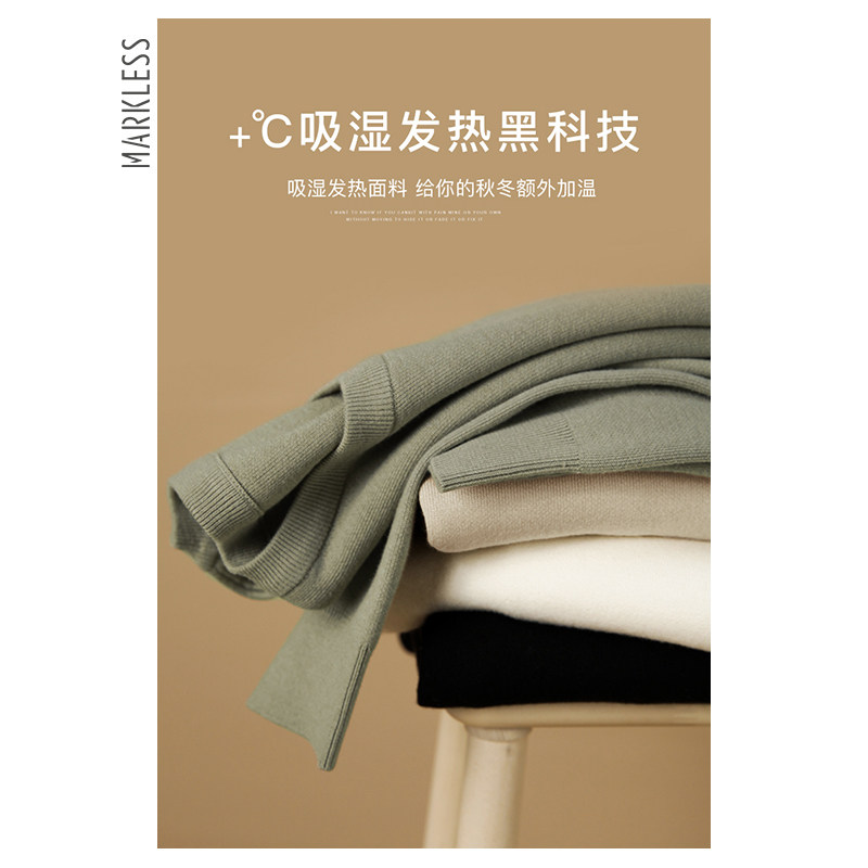Markless自发热毛衣男宽松圆领秋冬季多色加厚针织衫高领套头打底