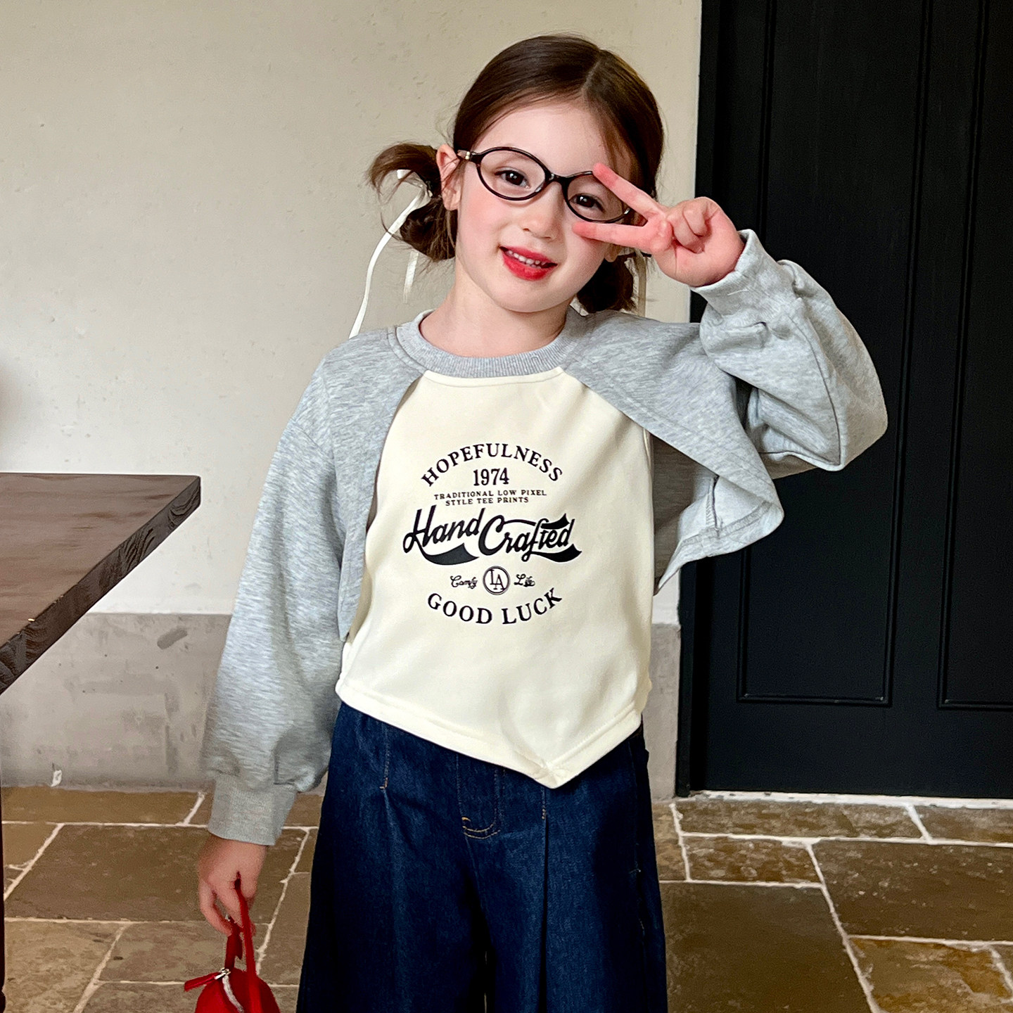 栀了成长记童装女童假两件印花上衣秋季新款儿童女宝韩版套头卫衣
