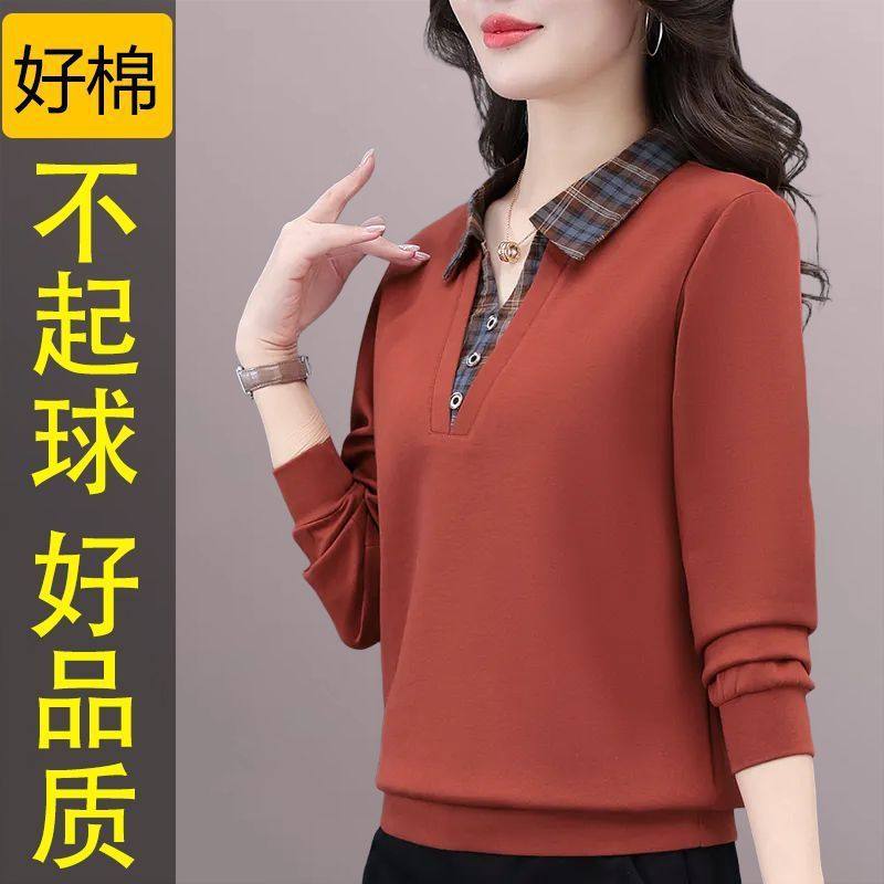 啄木鸟Polo领假两件棉质套头衫女秋季新款中老年时尚韩版拼接卫衣