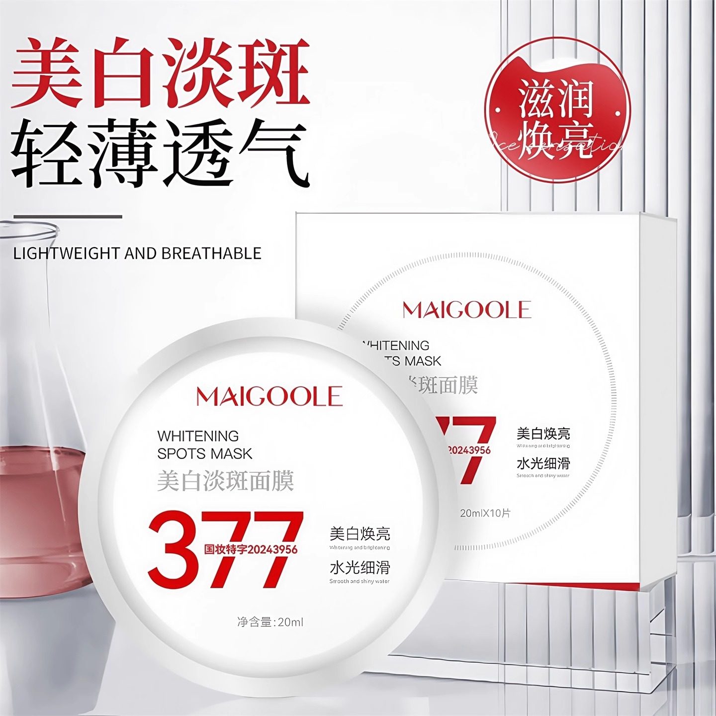 377美白淡斑面膜美白提亮改善肌肤暗沉补水保湿轻薄透气面膜正品